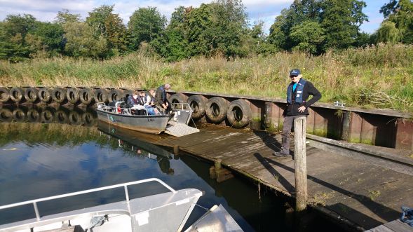 Vi sejler med Randers naturcenters skibe op langs Gudenåen i retning mod Langå. Vi har 3 skibe med plads til 7 passagerer i hver, Kørestole tæller for 2 personer. Afhængig af deltagerantal sejler vi et antal ture af ca 45 min.